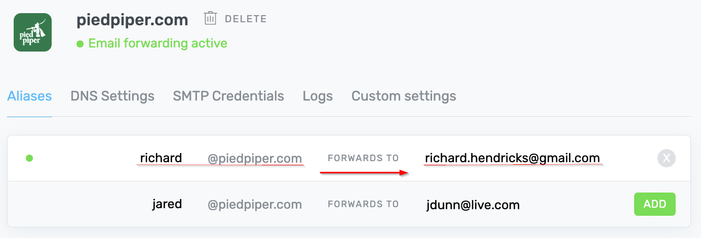 For example, we accept mail for addresses like [email protected] then forward this to one or more destination addresses e.g. [email protected]
