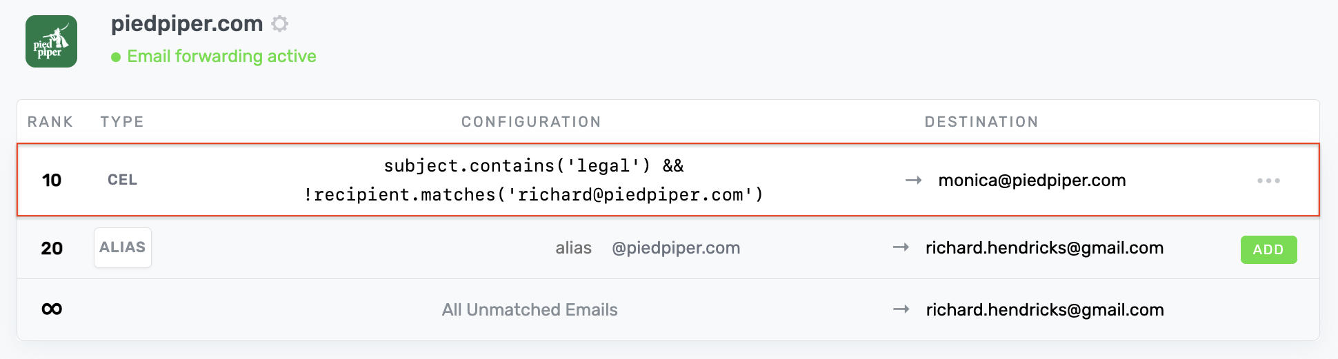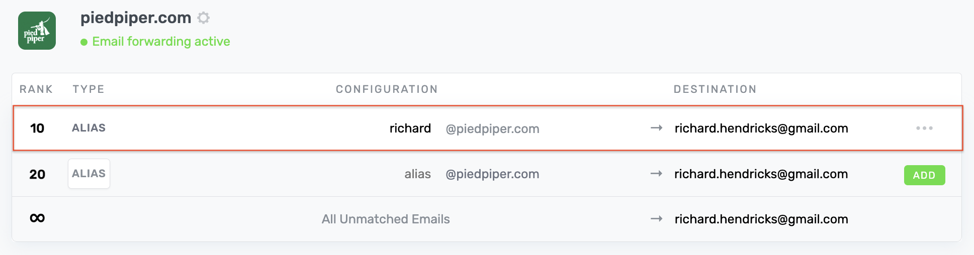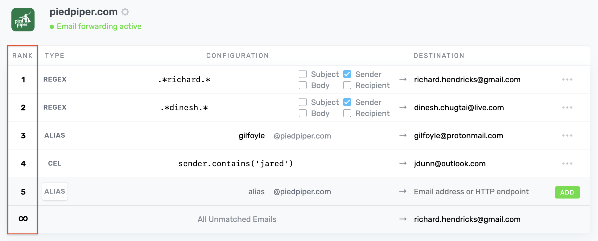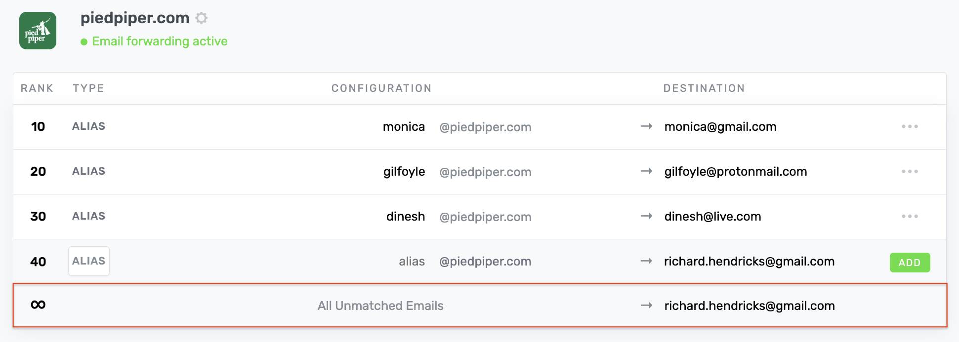 *@piedpiper.comwill match any alias underpiedpiper.com. -